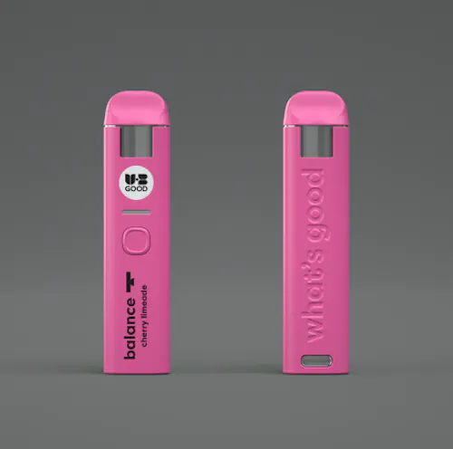 UBGOOD Cherry Limeade is a cannabis product available in multiple forms, including vaporizer cartridges and disposable pens. The cannabis brand UB GOOD offers the strain as part of its "Balance" collection, with the goal of providing a calming and uplifting experience. The product is a hybrid strain known for its balanced effects and a berry and citrus flavor profile.