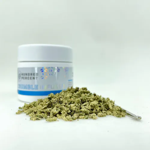 Hundred Percent Labs Cocomamba Crumble Infused Strawnana is a hybrid cannabis product that blends the effects of the Strawnana (Strawberry Banana) flower with Cocomamba crumble concentrate. The result is a potent, well-rounded hybrid that aims to balance a euphoric, creative high with deep physical relaxation.
