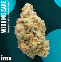 Wedding Cake, also known as Pink Cookies, is the familial genetic cross of Triangle Kush and Animal Mints. This delectable treat is rich with tangy sweet earth and pepper, taking notes and dimension from its OG and Durban Poison parentage. Enjoy this double dose of dense dankness with care, as it contains an extremely high THC content.