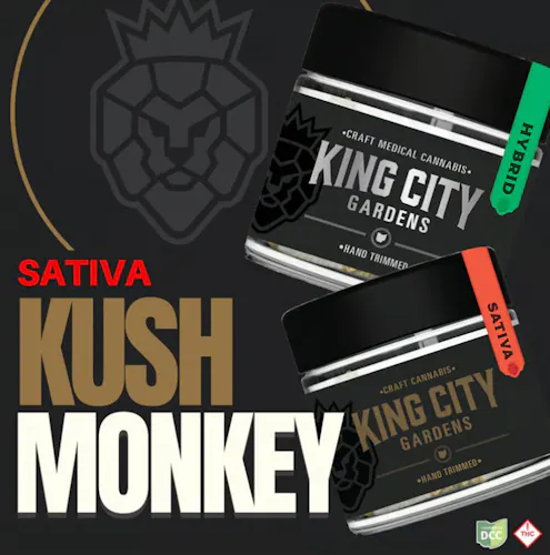 The Kush Monkey strain by King City Gardens is a sativa-dominant hybrid with a citrusy, hoppy, and spicy flavor profile, bred from Next Level and Grease Monkey genetics. It provides uplifting and creative effects.