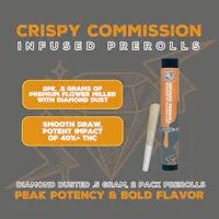 Crispy Commission Infused Flower. Elevate Your Experience: Peak Potency & Bold Flavor. Grab 'em- before they're gone. Lemon Dawg (Strains: Lemon OG Haze, GhostDawg)