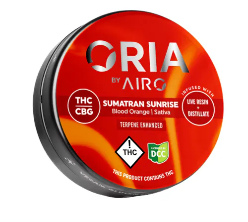 Feel your spirit radiate with Oria Sumatran Sunrise by Airo Brands. Sumatran Sunrise is a Sativa gummy with 10mg THC and 5mg of CBG giving you calm euphoria with a brain boost. Terpene-enhanced with Limonene, Humulene, and Myrcene for focused energy. With fast-acting, long-lasting capabilities, rejuvenate your palate with powerful blood orange and feel the inspiration start to flow. Brighten your day, awaken your senses, and feel your soul glow with life. Reveal your aura so it illuminates throughout your day.