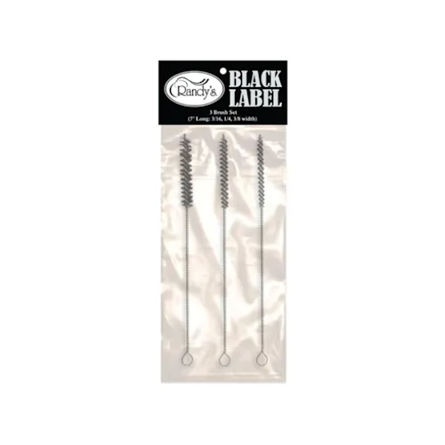 Randy’s 3 Brush Set is for cleaning large water pipes, hand pipes and vaporizers. Made of Nylon and Galvanized Steel. One of each size is available in this pack: