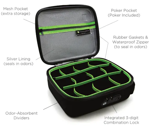 Mini-Dividers are lined with our Discreet-O-Matic (activated carbon fiber) fabric that absorbs odors. The dividers can be replaced (over time the odor absorption will diminish and new dividers can be purchased - much better than having to buy a whole new stash bag).