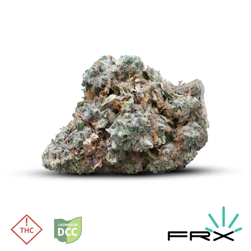 The FRX (FarmaceuticalRx) Wedding Cake strain is an indica-dominant hybrid, a cross between Triangle Kush and Animal Mints. It is known for its relaxing and euphoric effects, high THC content, and a sweet, creamy, vanilla, and peppery flavor. Consumers often report feeling calm, relaxed, and happy, making it a popular choice for evening use and for potentially helping with stress, anxiety, and insomnia.